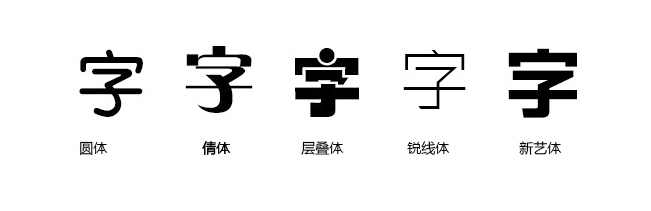 黑體本身就屬于比較現代的一種字體,所以它的字面和胸線都比較大,這樣比較容易閱讀,根據不同需要,設計出橫豎筆畫不同粗細的黑體字形來,最基本的就是第一種,纖細的黑體字給人輕,秀氣的感覺,粗厚的黑體字給人重,粗壯,力量的感覺,這些字形都是根據不同的需要設計而來的。中文字形除了宋體和黑體這兩種基本字形以外,還有很多不同種類的,比如
